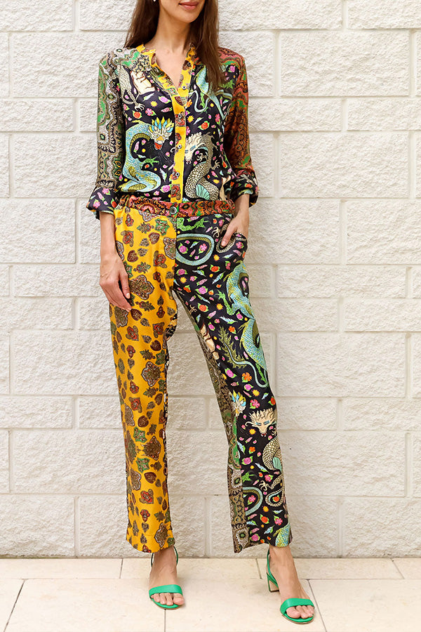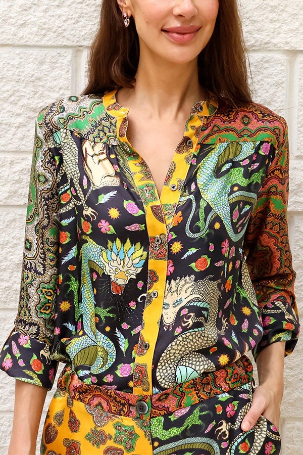 Dragon of My Eye Paisley Printed Patchwork Casual Blouse
